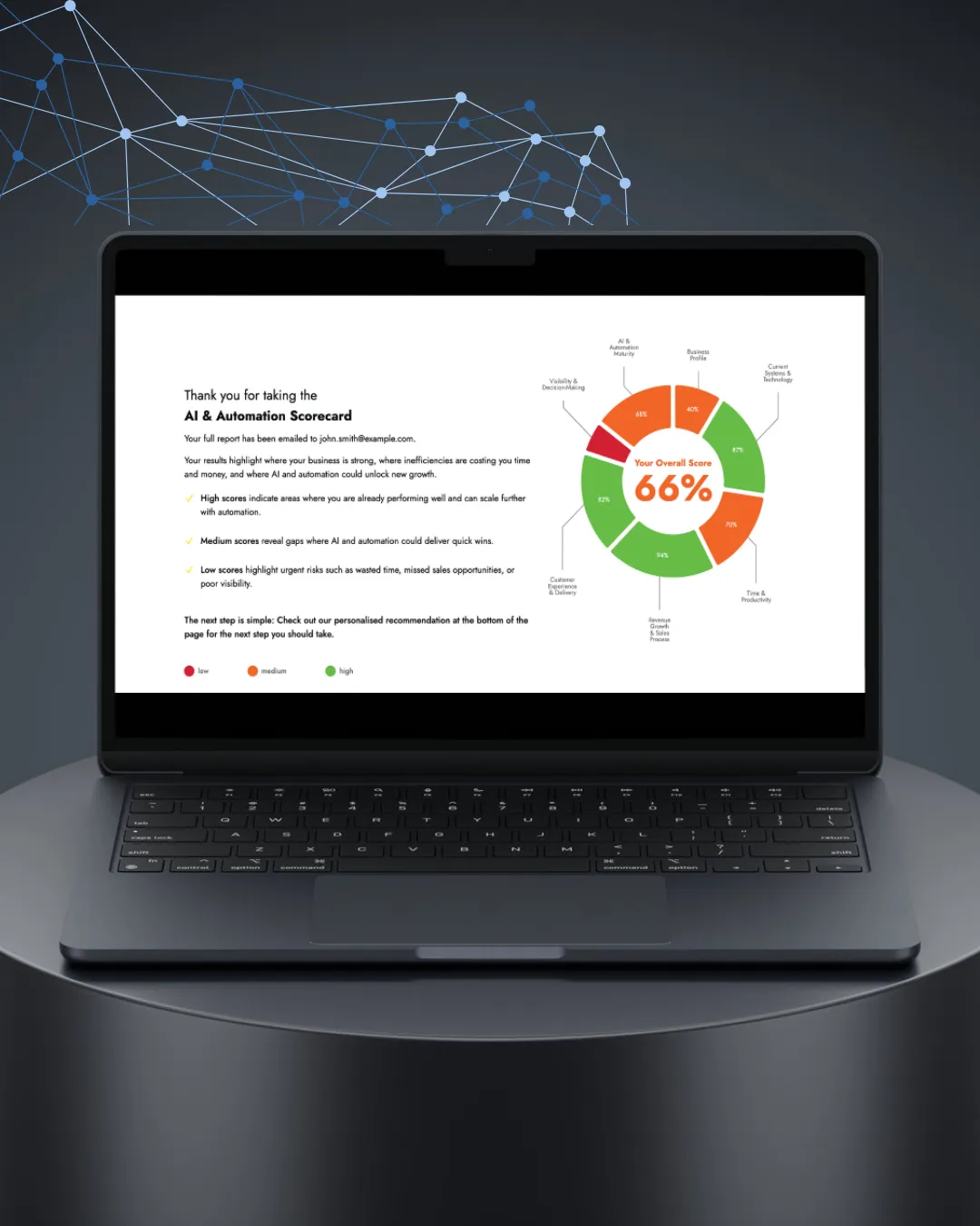 Answer 20 quick questions and receive a personalised report showing exactly where AI could help you cut costs, save time and unlock new revenue.